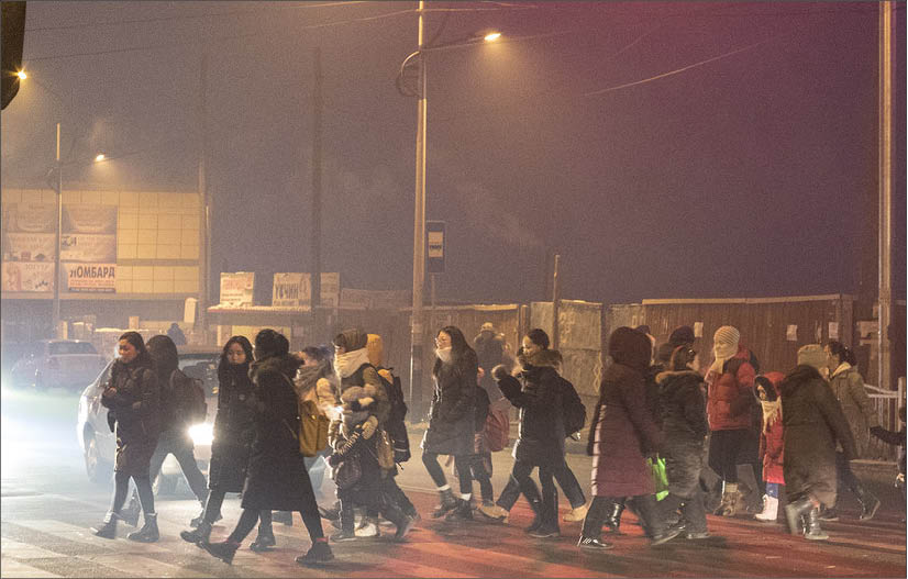 Trẻ em trên đường đến trường ở quận Songinokhairkhan, thành phố Ulaanbaatar, Mông Cổ, nơi mức độ ô nhiễm không khí cao nhất trong thành phố này. Ảnh: UNICEF
