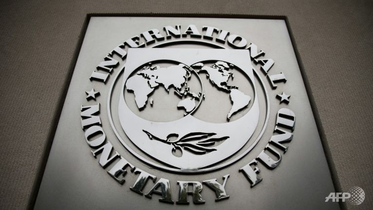 Logo của Quỹ Tiền tệ Quốc tế tại trụ sở chính ở thủ đô Washington, D.C., Mỹ. Ảnh: AFP
