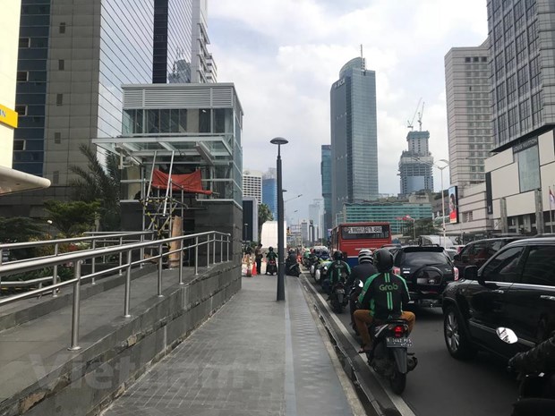 Mật độ giao thông dày đặc trên đường phố Jakarta. Ảnh: Đỗ Quyên/Vietnam+