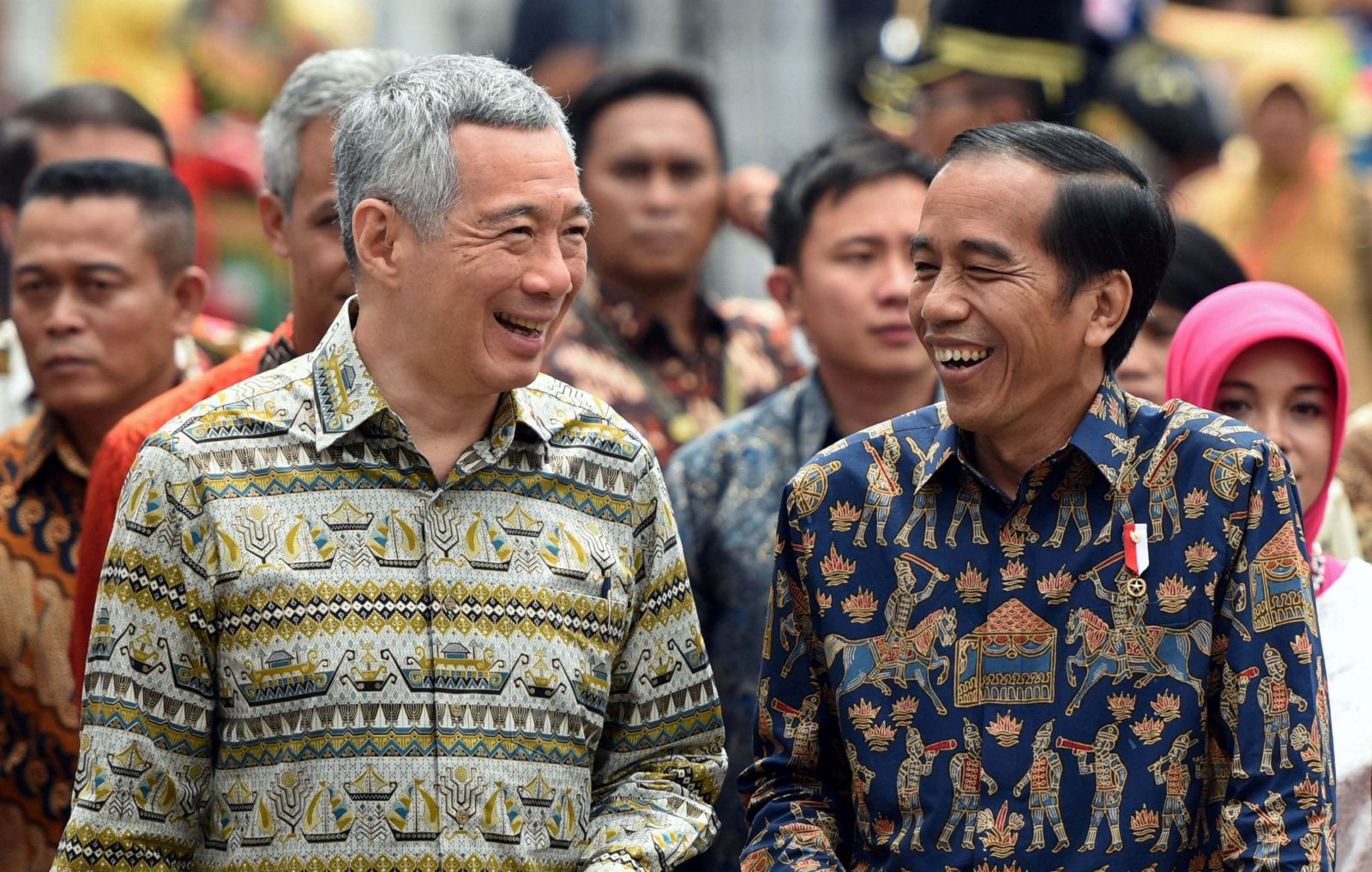 Tổng thống Indonesia Joko Widodo (bên phải) và Thủ tướng Singapore Lý Hiển Long. Ảnh: Reuters