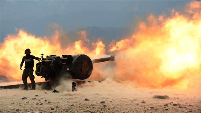 Một binh sĩ Afghanistan bắn một quả đạn pháo trong cuộc đụng độ với những kẻ khủng bố IS ở quận Kot, phía Đông tỉnh Nangarhar, ngày 26/6/2016. Ảnh: AFP