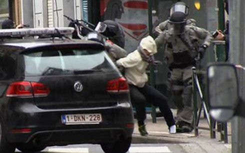 Hình ảnh vụ bắt giữ tên khủng bố Salah Abdul Salam. Ảnh: AP