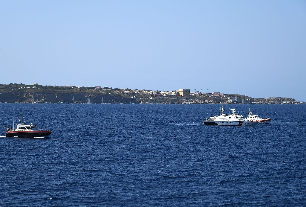 Tàu của cảnh sát và lực lượng bảo vệ bờ biển đang tuần tra ngoài khơi bờ biển phía tây Italy. Ảnh: AFP