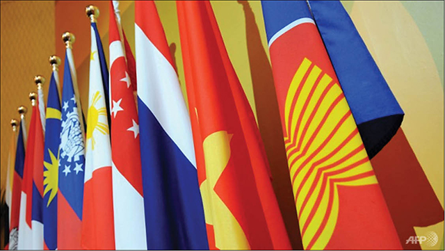 Lá cờ ASEAN và quốc kỳ của các nước thành viên. Ảnh: AFP