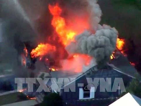 | Khói lửa bốc ngùn ngụt sau vụ cháy, nổ tại phía Bắc thành phố Boston, bang Massachusetts, Mỹ ngày 13/9. Ảnh: AP/ TTXVN |