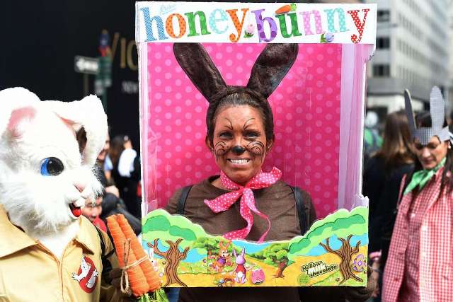 Những bộ trang phục đầy màu sắc lấy cảm hứng từ Thỏ Phục sinh thường được thấy trong các cuộc diễu hành Phục sinh hằng năm ở New York. Ảnh: AFP