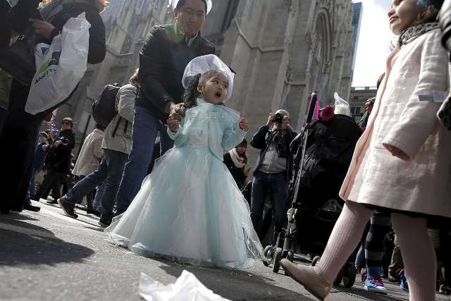 Một bé gái hào hứng tham gia lễ hội trên đại lộ Fifth Avenue, New York ngày 27/3. Ảnh: Reuters