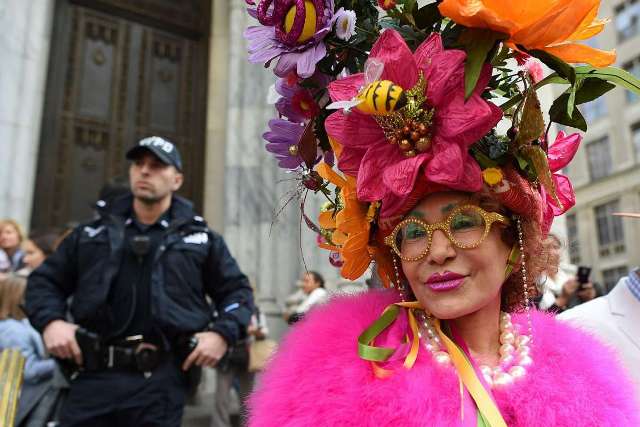 Bộ trang phục Phục Sinh lộng lẫy trên đại lộ Fifth Avenue ở thành phố New York ngày 27/3 (theo giờ địa phương). Ảnh: AFP