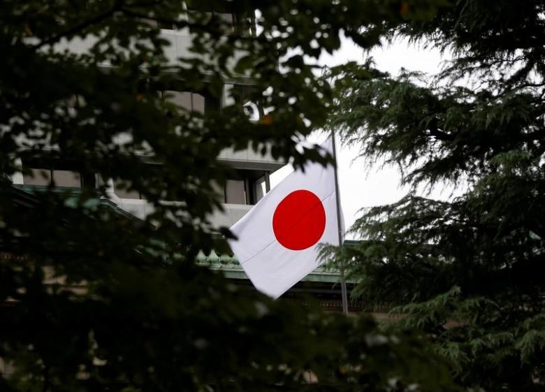 Quốc kỳ Nhật Bản tung bay ở trụ sở Ngân hàng Trung ương Nhật Bản. Ảnh: Reuters