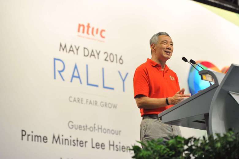 Thủ tướng Singapore Lý Hiển Long phát biểu trong ngày Quốc tế Lao động 1/5/2016. Ảnh: Straitstimes.