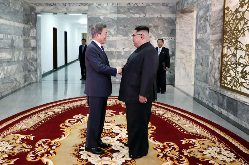 Lãnh đạo Triều Tiên – Hàn Quốc tổ chức họp mặt bất ngờ tại làng đình chiến Bàn Môn Điếm. Ảnh: Investing.com