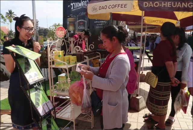 Giới thiệu cà phê Lào trong Lễ hội Ẩm thực Lào năm 2017. Ảnh: Vientiane Times