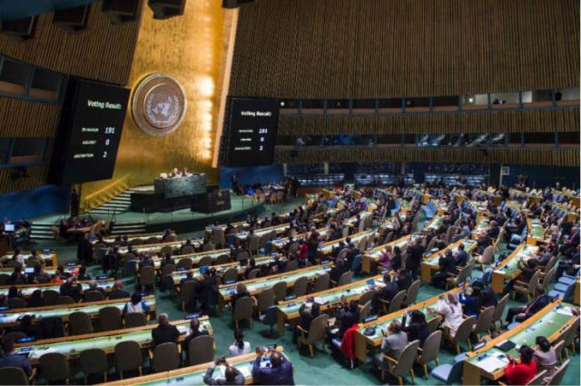 Một cuộc họp của LHQ về lệnh cấm vũ khí hạt nhân. Ảnh: AP