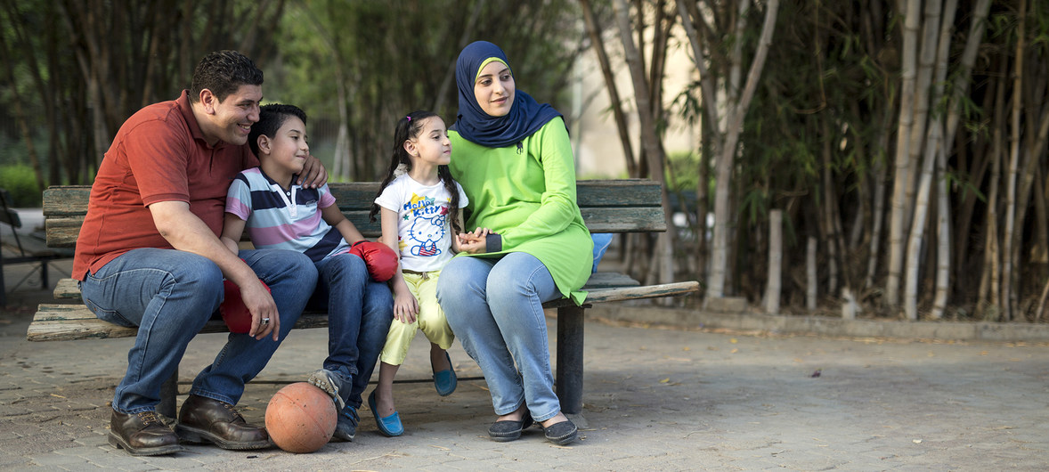 Ahmed và Rasha thưởng thức một bữa ăn ngoài trời trong công viên Nhật Bản ở khu phố Helwan ở Cairo, Ai Cập, với hai đứa con của họ, Mohamed và Raghad. Ahmed và Rasha đã chọn không có thêm con nữa vì họ muốn đảm bảo rằng mang lại cho Ahmed và Raghdad một cuộc sống tốt đẹp và sự giáo dục tốt. Ảnh: UNFPA / Roger Anis