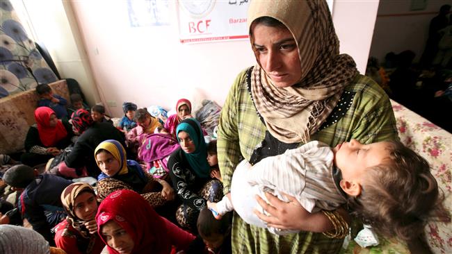 Người dân Iraq trong một tòa nhà được sử dụng làm nơi trú ẩn tạm thời ở thành phố Makhmur, Iraq. Ảnh: Reuters