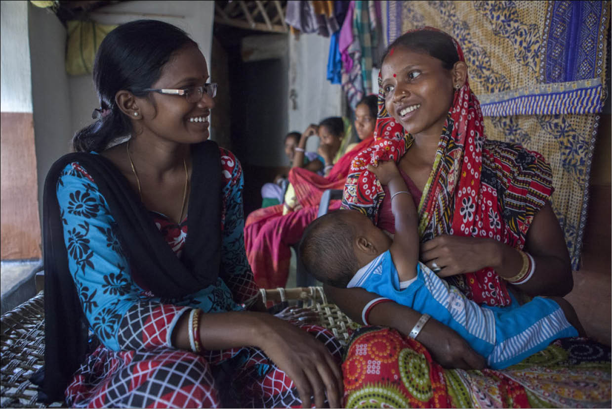 Một tình nguyện viên về dinh dưỡng và chăm sóc trẻ em trao đổi với các bà mẹ ở Kudada, Ấn Độ. Ảnh: UNICEF