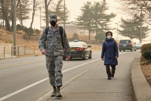 Các binh sĩ của lực lượng quân đội Mỹ tại Hàn Quốc được phép đeo khẩu trang khi làm nhiệm vụ để chống một kẻ thù mới: ô nhiễm bụi mịn.