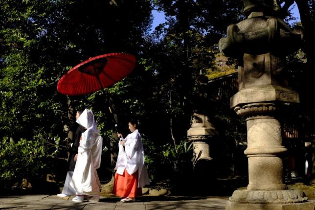 Một cặp đôi trong đám cưới truyền thống ở Nhật Bản. Ảnh: Reuters