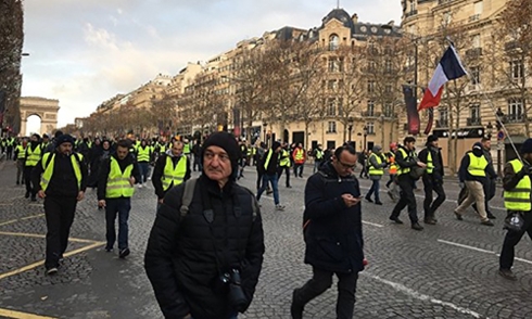 Cảnh sát chống bạo động Pháp ngày 8/12 sử dụng hơi cay để đẩy lùi hàng trăm người biểu tình tại khu vực đại lộ Champs-Elysees và Khải Hoàn Môn. Có 481 người bị bắt, trong số này nhiều người mang theo mặt nạ, búa, súng cao su và gạch đá, nghi dùng để tấn công lực lượng cảnh sát, theo thủ tướng Pháp Edouard Philippe.