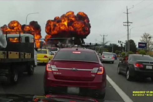 Máy bay xẹt qua đường, phát nổ trên đầu xe hơi