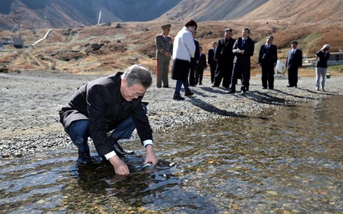 Sáng 20/9, ông Moon Jae-in và ông Kim Jong-un đã cùng đặt chân lên đỉnh núi cao nhất Bán đảo Triều Tiên để ăn mừng thành công của cuộc gặp Thượng đỉnh Hàn – Triều, mà kết quả cụ thể là Tuyên bố chung Bình Nhưỡng tháng 9.