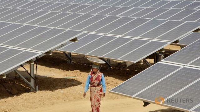 Các mô-đun năng lượng mặt trời được lắp đặt tại nhà máy điện năng lượng mặt trời Naini ở thành phố Allahabad, phía bắc Ấn Độ. Ảnh: Reuters