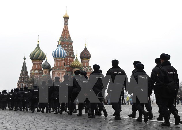 Cảnh sát Nga tuần tra tại Quảng trường Đỏ ở Moskva ngày 2/4. (Nguồn: AFP/TTXVN)