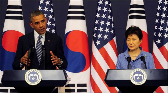 Tổng thống Mỹ Barack Obama và người đồng cấp Hàn Quốc Park Geun-Hye. Ảnh: PBS