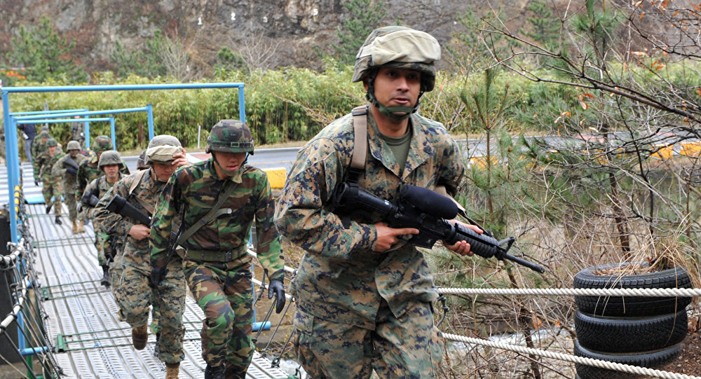 Binh sĩ Mỹ-Hàn trong một cuộc tập trận chung. Ảnh: AFP