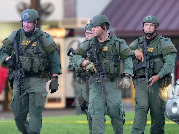 Cảnh sát Mỹ làm nhiệm vụ tại hiện trường một vụ nổ súng. (Nguồn: AFP/TTXVN)