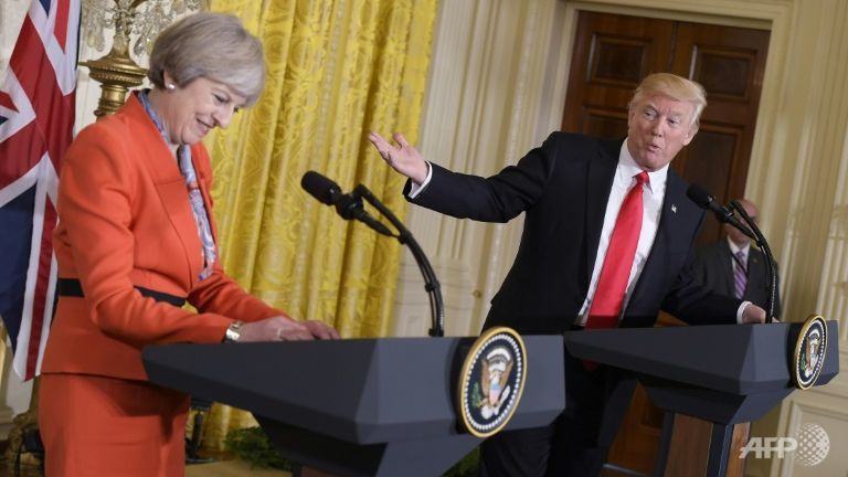 Tổng thống Mỹ Donald Trump trong một cuộc họp báo chung với Thủ tướng Anh Theresa May tại Nhà Trắng, Mỹ ngày 27/1. Ảnh: AFP