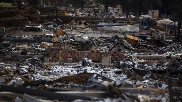 Quang cảnh đổ nát sau vụ cháy rừng ở California năm 2018. (Nguồn: Los Angeles Times)