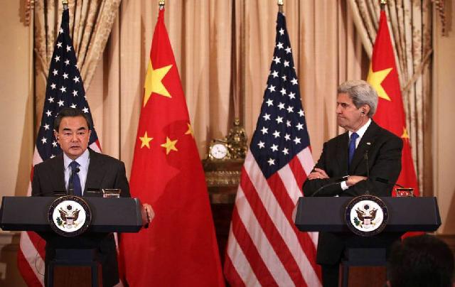 Ngoại trưởng Trung Quốc Vương Nghị và người đồng cấp Mỹ John Kerry. Ảnh: AFP