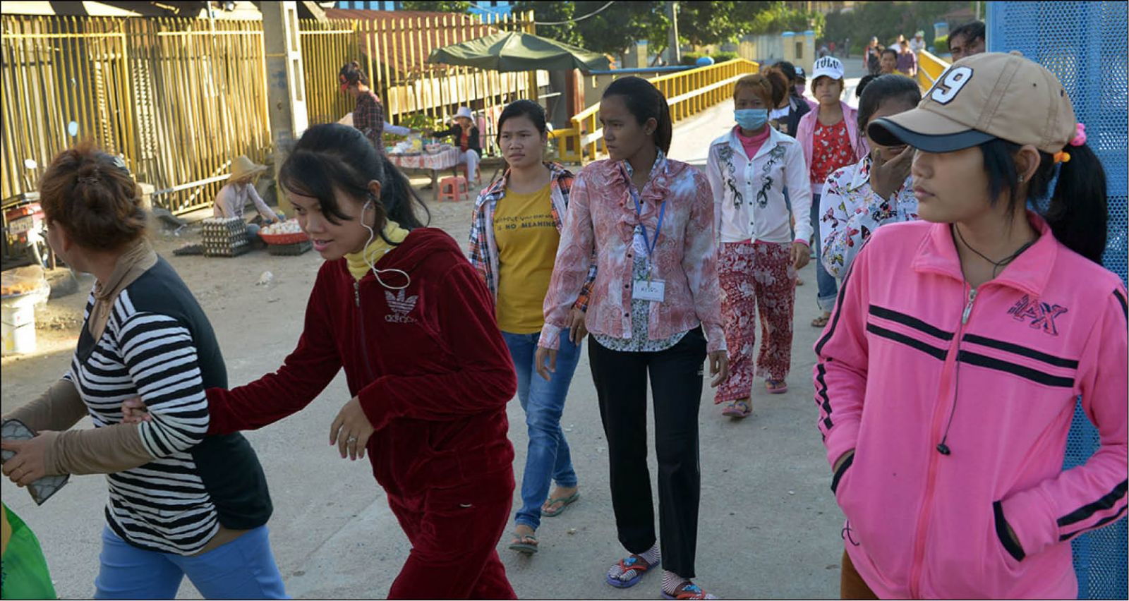 Công nhân may mặc phía trước một nhà máy ở thủ đô Phnom Penh, Campuchia. Ảnh: AFP