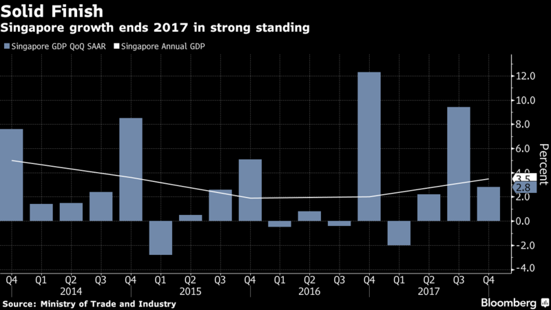 Nền kinh tế Singapore đã kết thúc trong năm 2017 trên cơ sở vững chắc. Ảnh: Bloomberg