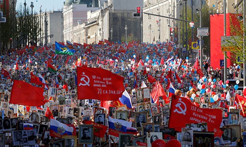 Khoảng một triệu người đổ ra đường ở Moscow vào ngày 9/5 để kỷ niệm ngày chiến thắng phát xít. Nhiều thành phố khác cũng tham gia, với khoảng 10 triệu người./.
