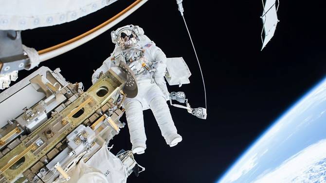 Một phi hành gia đang đi bộ ngoài trạm không gian quốc tế. Ảnh: AFP