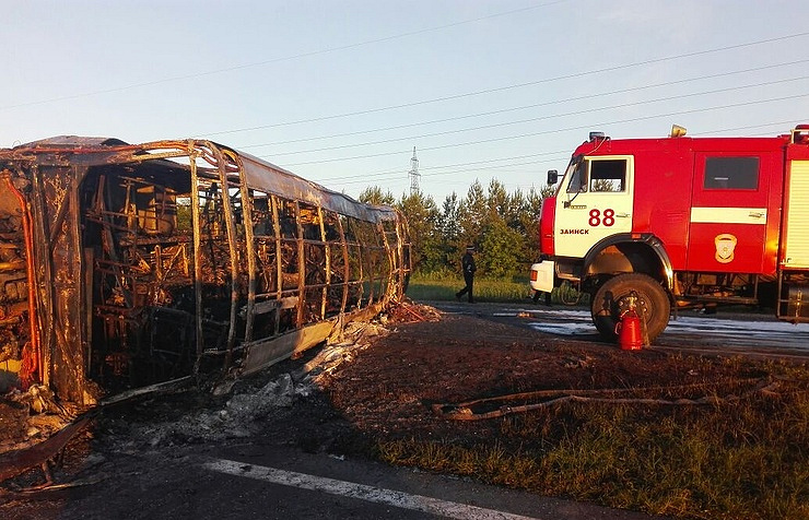 Theo các báo cáo trước đó, vụ tai nạn xảy ra vào khoảng 0h40 sáng nay (2/7), theo giờ Moscow, khi một chiếc xe tải bất ngờ va chạm với một chiếc xe buýt chở 28 người. Vụ tai nạn làm chiếc xe buýt lật và bốc cháy.