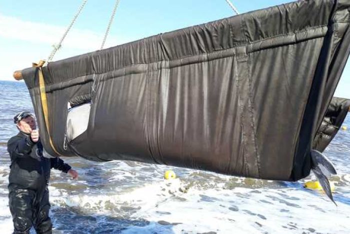 Những chú cá voi được vận chuyển một quãng đường 1.800km trước khi được thả vào môi trường tự nhiên. (Nguồn: Viện Nghiên cứu Thủy sản và Hải dương học Nga)
