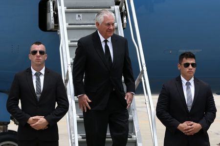 | Ngoại trưởng Mỹ Rex Tillerson đến sân bay quốc tế Don Muang ở thủ đô Bangkok, Thái Lan ngày 8/8. Ảnh: Reuters |