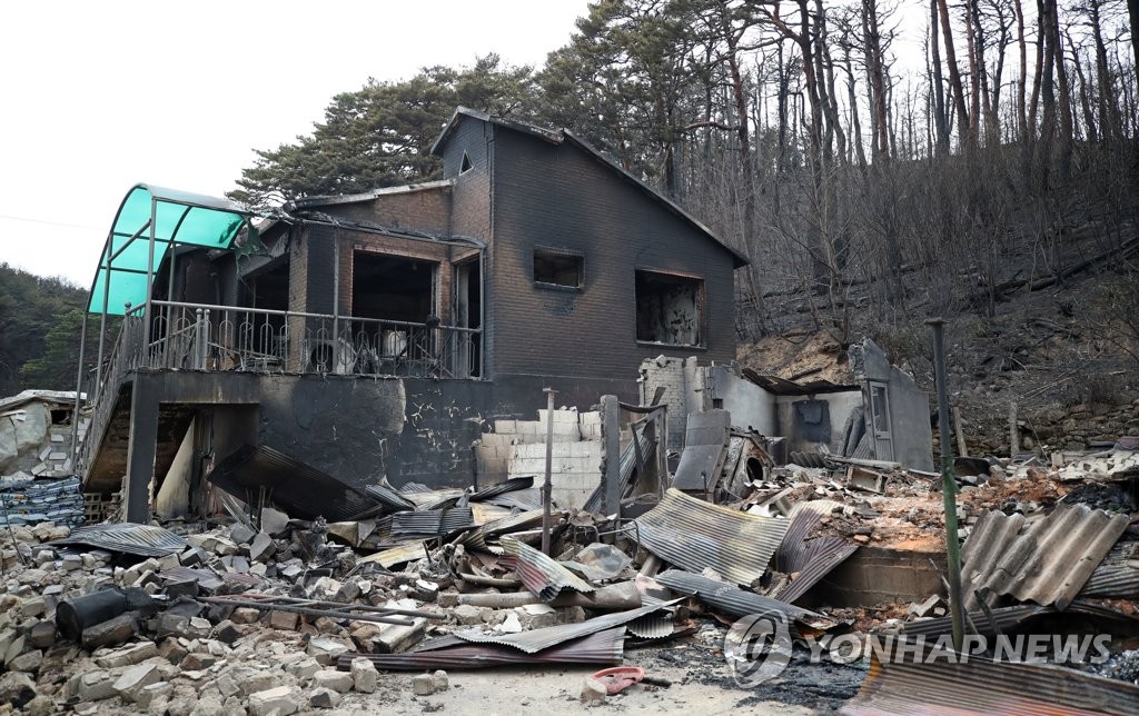 Nhiều căn nhà bị thiêu rụi do cháy rừng ở khu vực phía Đông Hàn Quốc. Ảnh: Yonhap