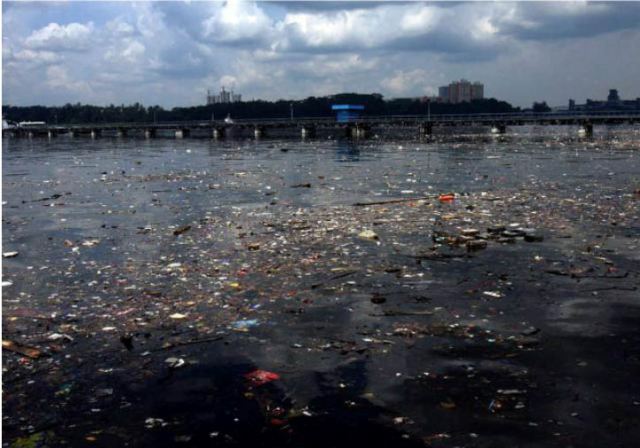Hàng tấn rác thải dọc theo eo biển Johor, Malaysia. Ảnh: The Star