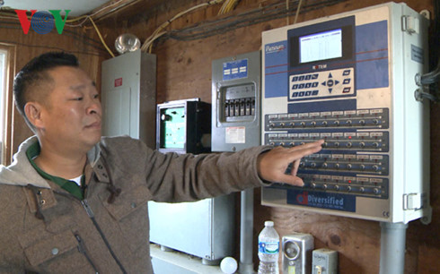 “Anh Tuấn: Đây là cái dimmer để chỉnh độ sáng. Hệ thống computer sẽ làm việc theo hàng ngày và hàng giờ để điều chỉnh nhiệt độ ánh sáng phù hợp với tiến độ tăng trưởng của con gà.