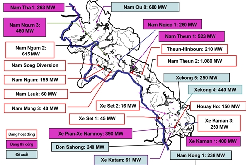 Một số đập thủy điện của Lào. Đồ họa: International Rivers