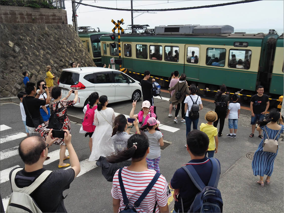 Khách du lịch chụp hình lưu niệm ở thành phố Kamakura, Nhật Bản. Ảnh: Nikkei
