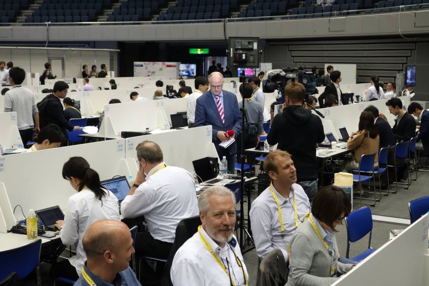 Theo thông tin từ Bộ Ngoại giao Nhật Bản, khoảng 6.000 phóng viên và những người liên quan đến các phương tiện truyền thông đã đăng ký vào IMC, nơi có cả một sân vận động lớn và các cơ sở thể thao kèm theo.