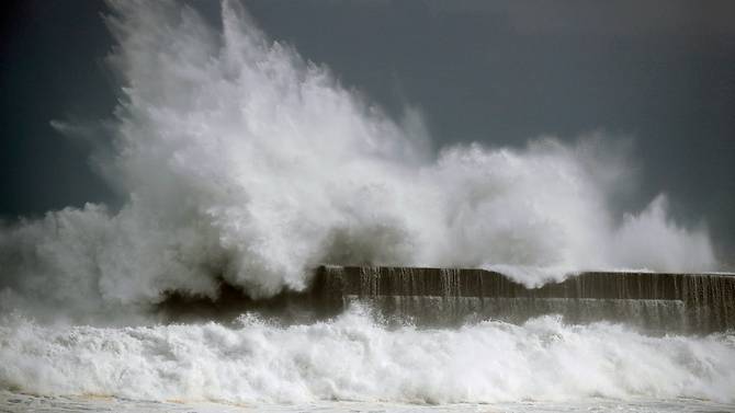 Sóng lớn xuất hiện tại cảng cá Kochi, miền tây nam Nhật Bản khi cơn bão Krosa đang bắt đầu đổ bộ vào khu vực này. Nguồn: CNA