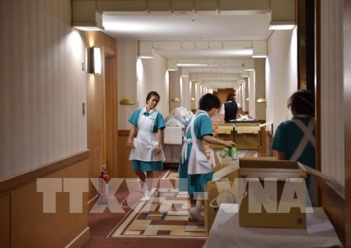 Nhân viên làm việc tại một khách sạn ở Tokyo, Nhật Bản. Ảnh: AFP/ TTXVN