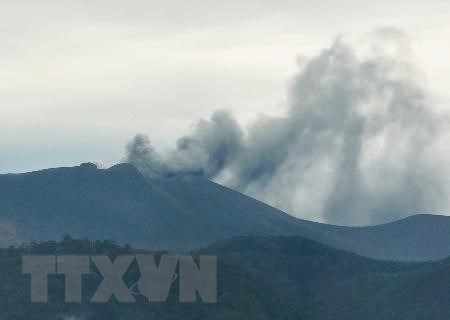 Núi lửa Shimmoe phun các cột tro bụi lên không trung. (Nguồn: Kyodo/TTXVN)