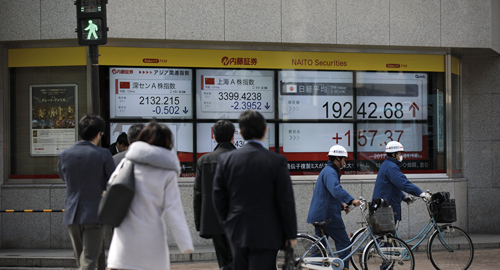 | Người dân băng qua đường, trước một bảng chỉ số chứng khoán Nikkei ở thủ đô Tokyo, Nhật Bản. Ảnh: AFP |